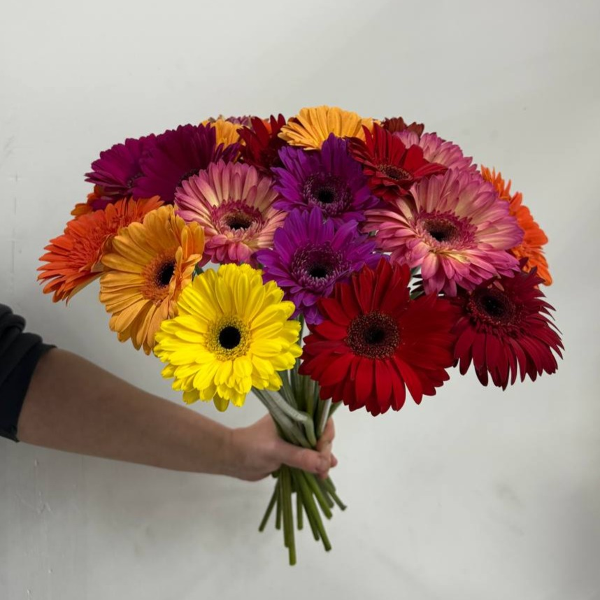 25 ярких гербер под ленту - это сочетание яркости и эмоций. Это отличный выбор для тех, кто хочет сделать запоминающийся подарок на день рождение, день мамы, в новогоднюю ночь, 14 февраля и на 8...