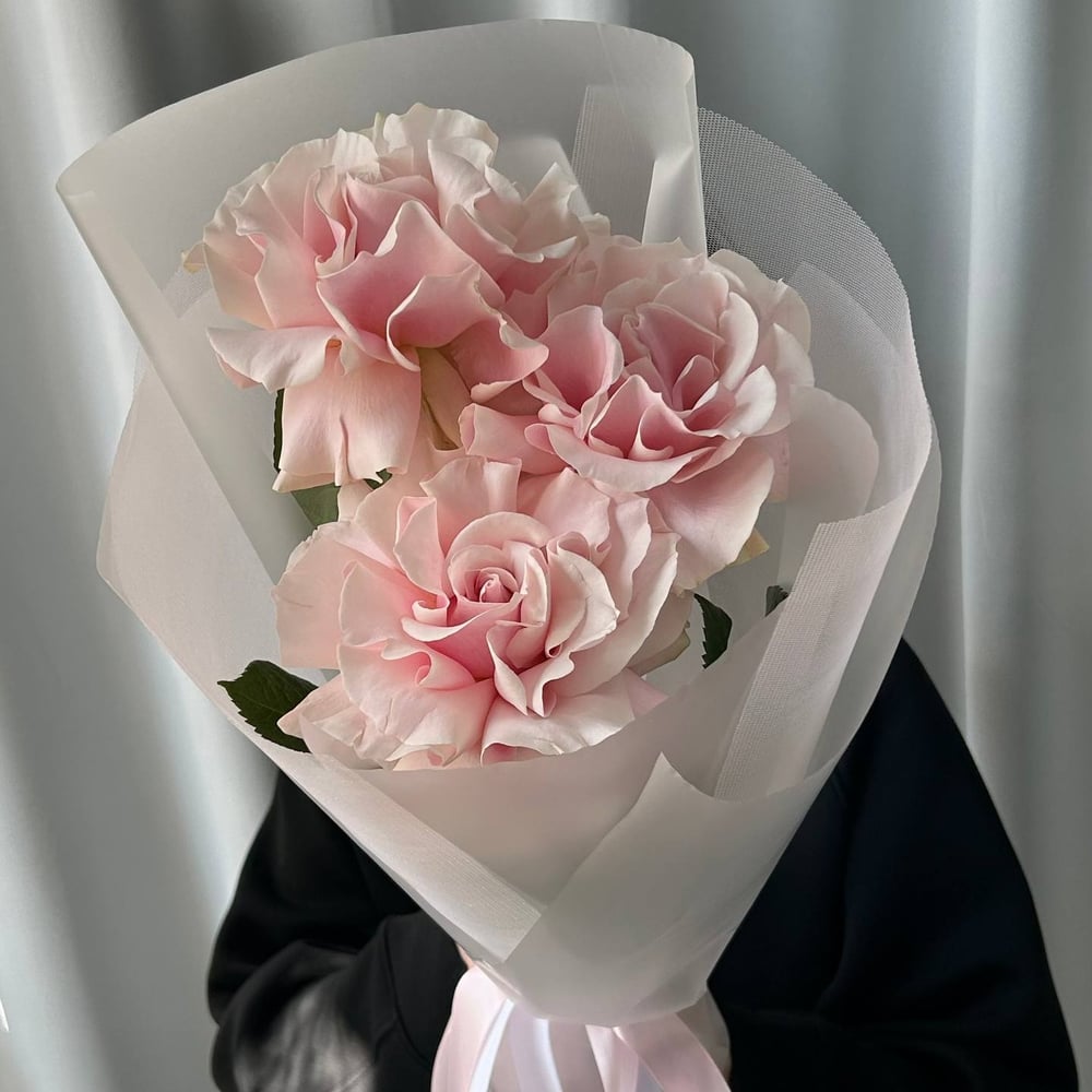 Нежный букет из розовых французских роз в матовой упаковке