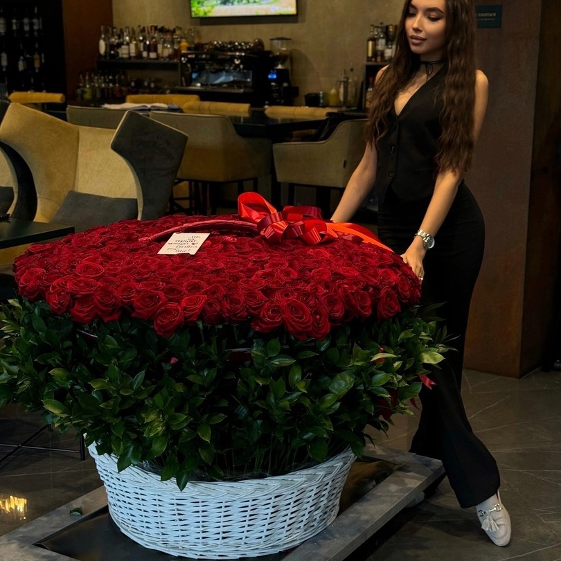 351 роза в корзине гигант
