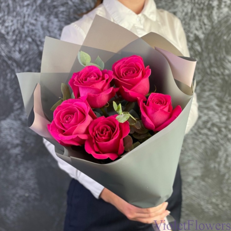 Букет «5 малиновых роз»
