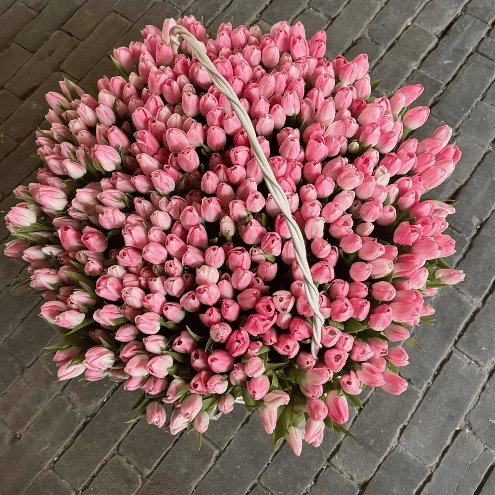 501 тюльпан в корзине