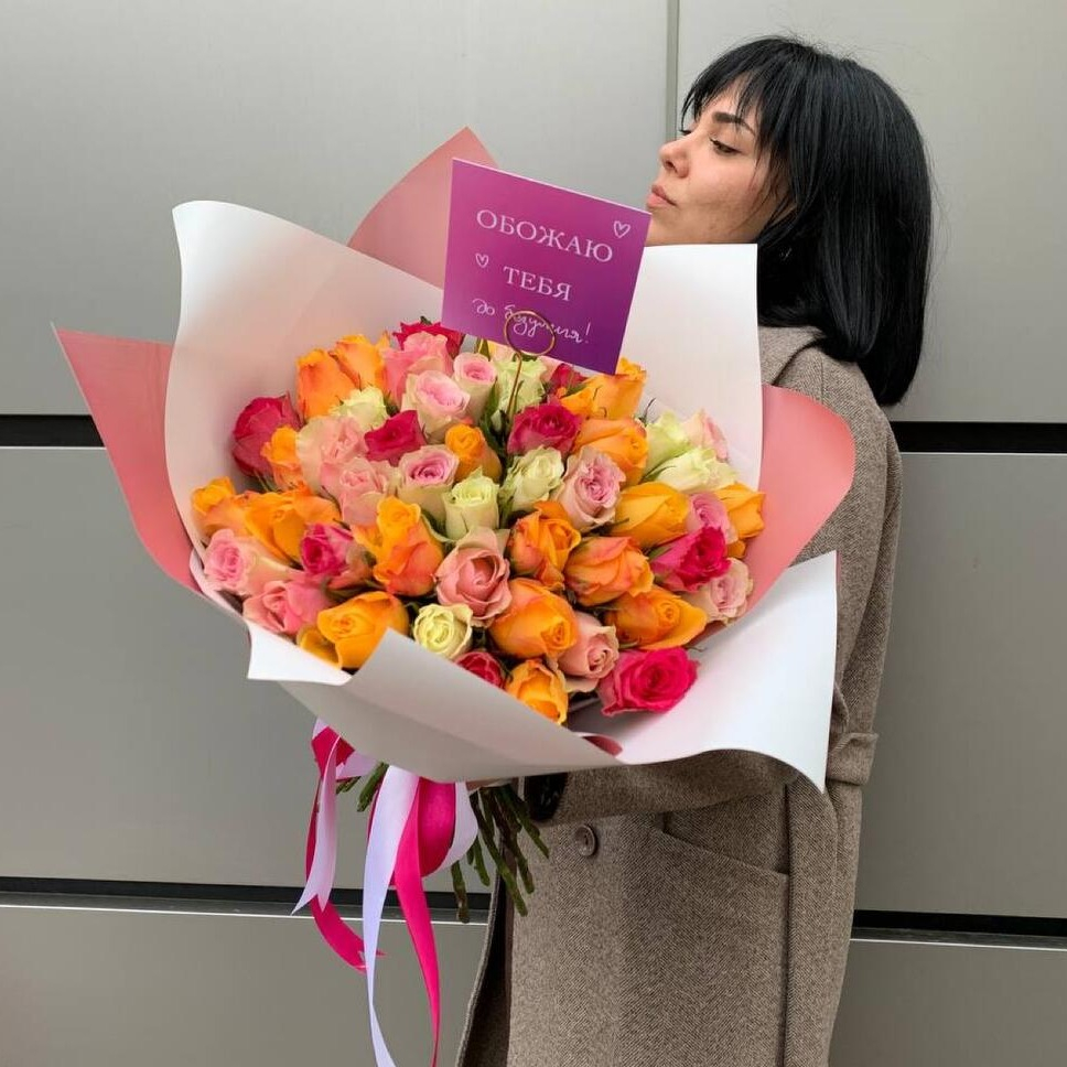 Букет из 51 кенийской розы в стильном в оформлении. Качественные цветы с премиум плантаций будут радовать вас долго. В подарок вы получите инструкцию по уходу и специальное средство для продления жизни растениям