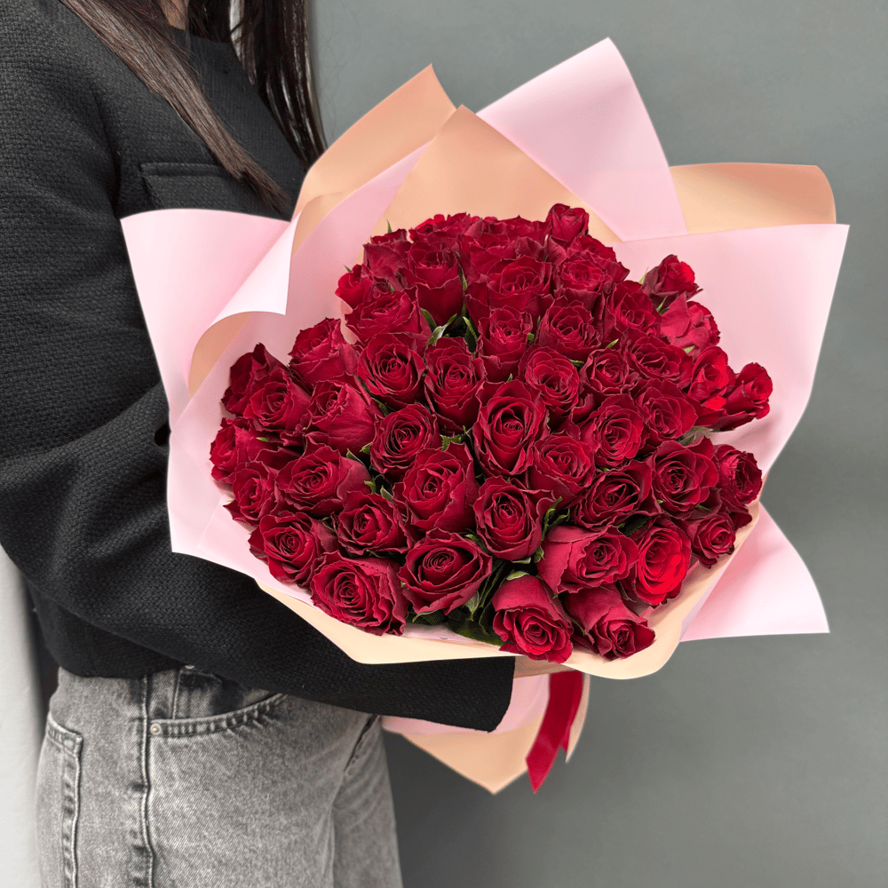 51 красная Кения 40см. Смотрятся стильно и аккуратно в букете.