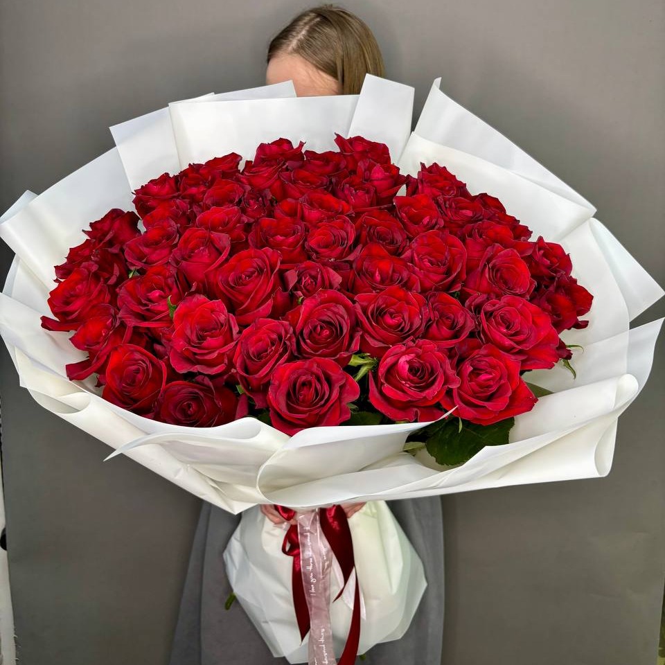 Порадуйте своих близких или украсьте свое пространство букетом из 51 красной розы длиной 60 см. Эти роскошные цветы символизируют любовь и страсть, а их насыщенный цвет и величественный вид придаду...