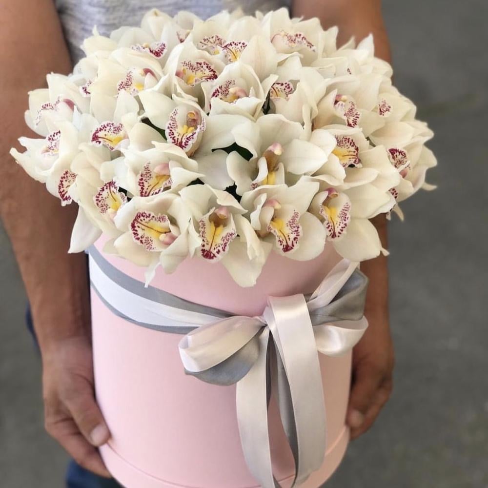 Шляпная коробка с цветами «51 Орхидея в Коробке»