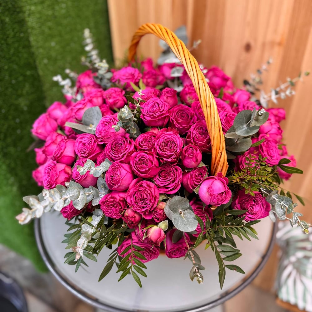 51 пионовидная роза в корзинке