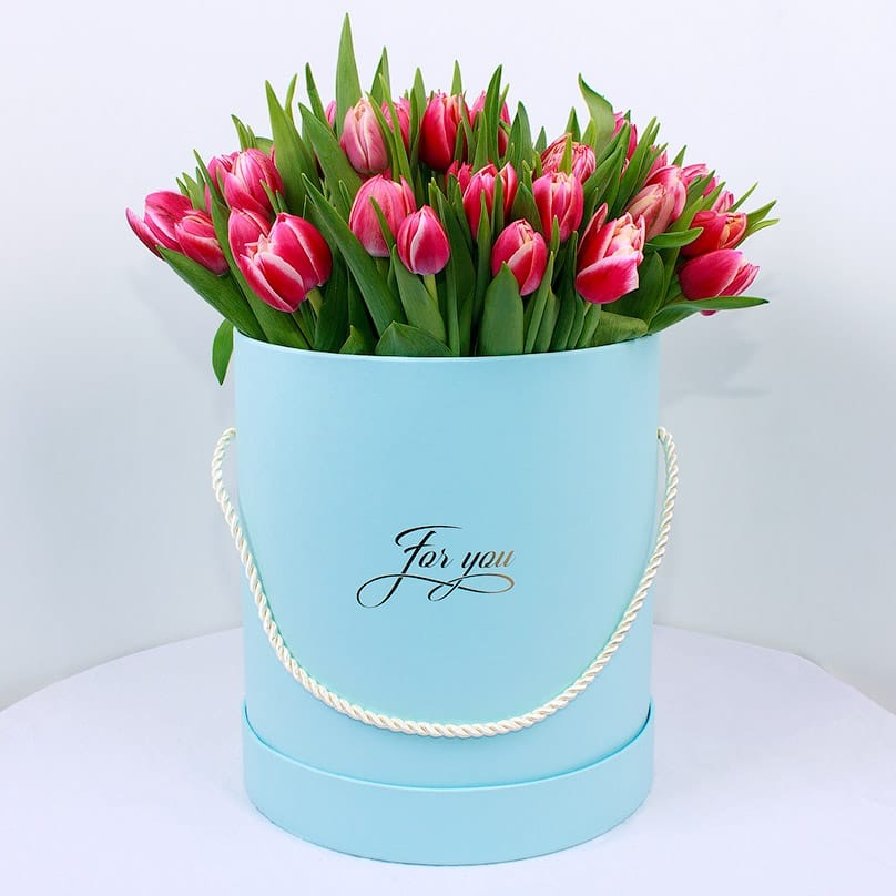 51 тюльпан в шляпной коробке