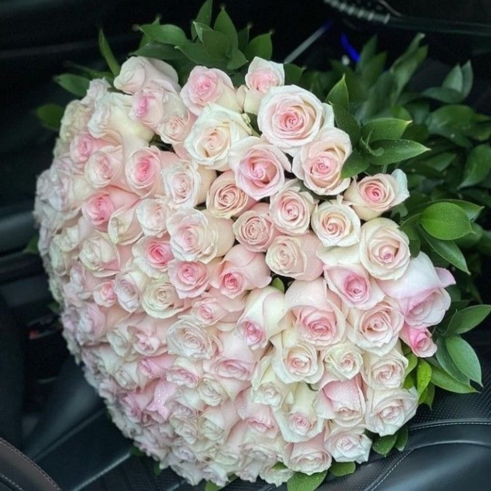 Большой букет роз под ленту уместен для любого случая: день рождения, первое свидание, годовщина свадьбы. Эта композиция из нежнейших цветов затмит любые подарки. Она выглядит невероятно нежно, а зел…