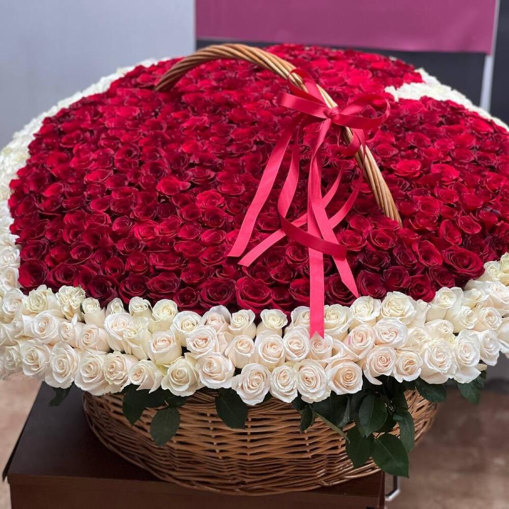 Шокирующий букет из 601 Розы ! В большой плетёной Корзине Эффектный имиджевый букет Производит незабываемое впечатление ! Идеальный подарок на 8 Марта