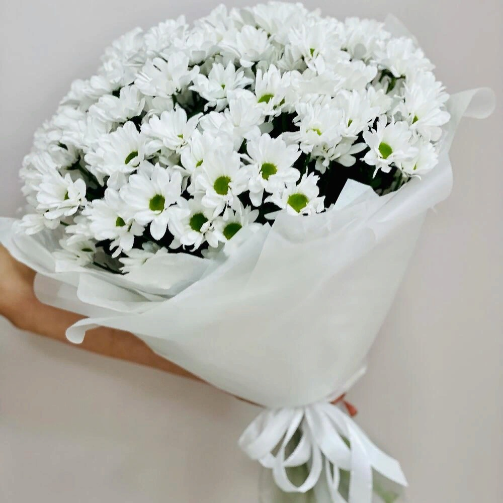 Букет «9 белых хризантем-ромашек в упаковке»