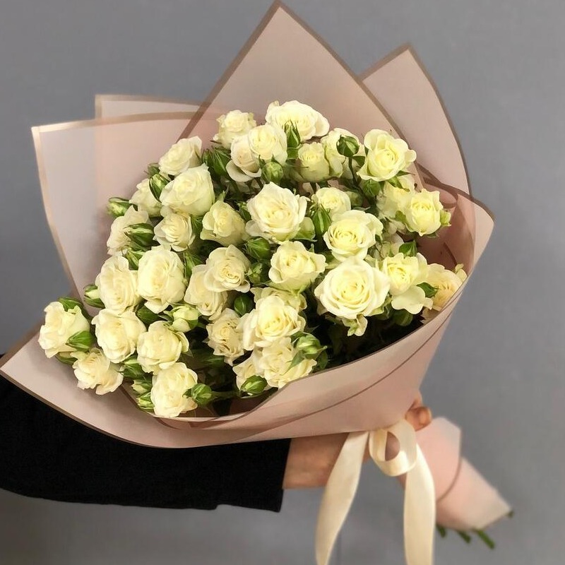 Букет из 9 кустовых роз в дизайнерском матовом оформлении идеальный вариант букет на торжество, или чтобы просто порадовать близкого человеку. Данный кустовые розы отличаются своей стойкостью, лег...