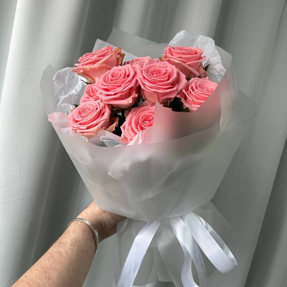 Нежная композиция из 9 роз насыщенного розового цвета. Благородные бутоны в лаконичной упаковке - идеальный способ сказать “Я тебя люблю” или просто сделать приятный сюрприз. Что внутри: • 9 св...