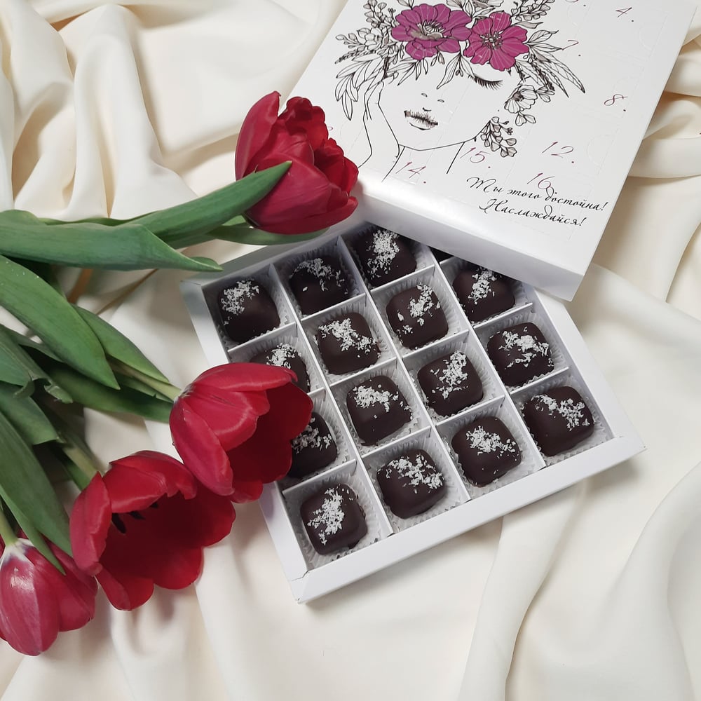 Уникальный подарок! Адвент-календарь для женщин. Каждый день открывайте по 1 окошечку, выполняйте приятное для себя задание и награждайте себя конфетой 😍 Состав Баунти: кокосовая паста, кокосовое молоко, сироп топинамбура, какао тёртое, какао масло, кокосовая стружка. Подарите наслаждение и позаботьтесь о здоровье своих близких! Натуральные, очень вкусные десерты из качественных растительных ингредиентов. Без сахара Без муки Без химии Без термообработки Позвольте себе и своим близким полезное удовольствие!!!