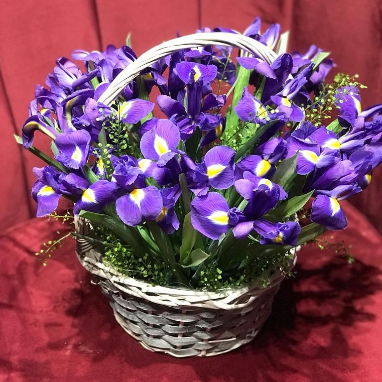 Корзина с цветами «Ах эти синие цветы...!» из ирисов