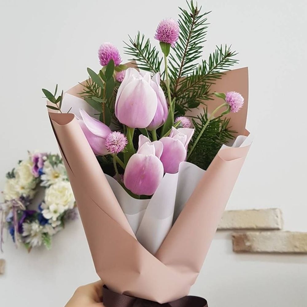 Букет «Альпика» из тюльпанов и хризантем