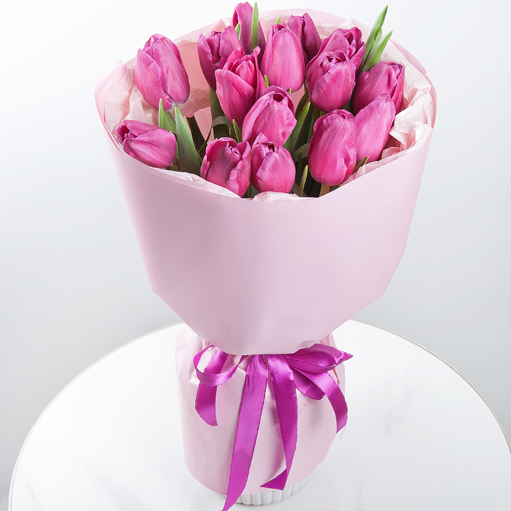 Этот букет, словно аметистовый сон о сиреневых тюльпаны, символизирующих приход весны. Композиция создает атмосферу романтики и загадочности. Современная упаковка подчеркивает изысканность букета, который поможет выразить самые глубокие чувства.