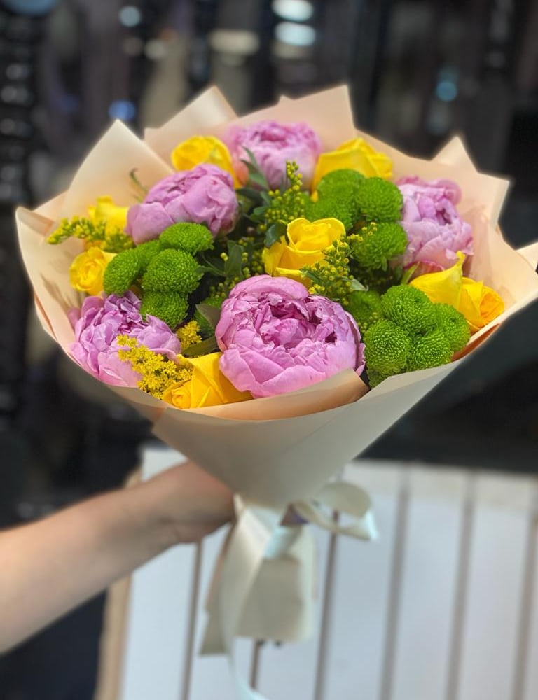 Букет «Аромат лета» из роз и пионов