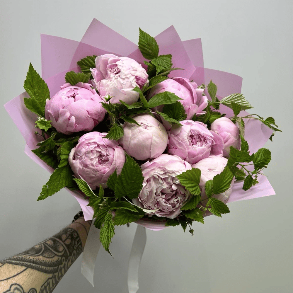 Букет «Ароматные пионы Сара 9 шт с малиной»