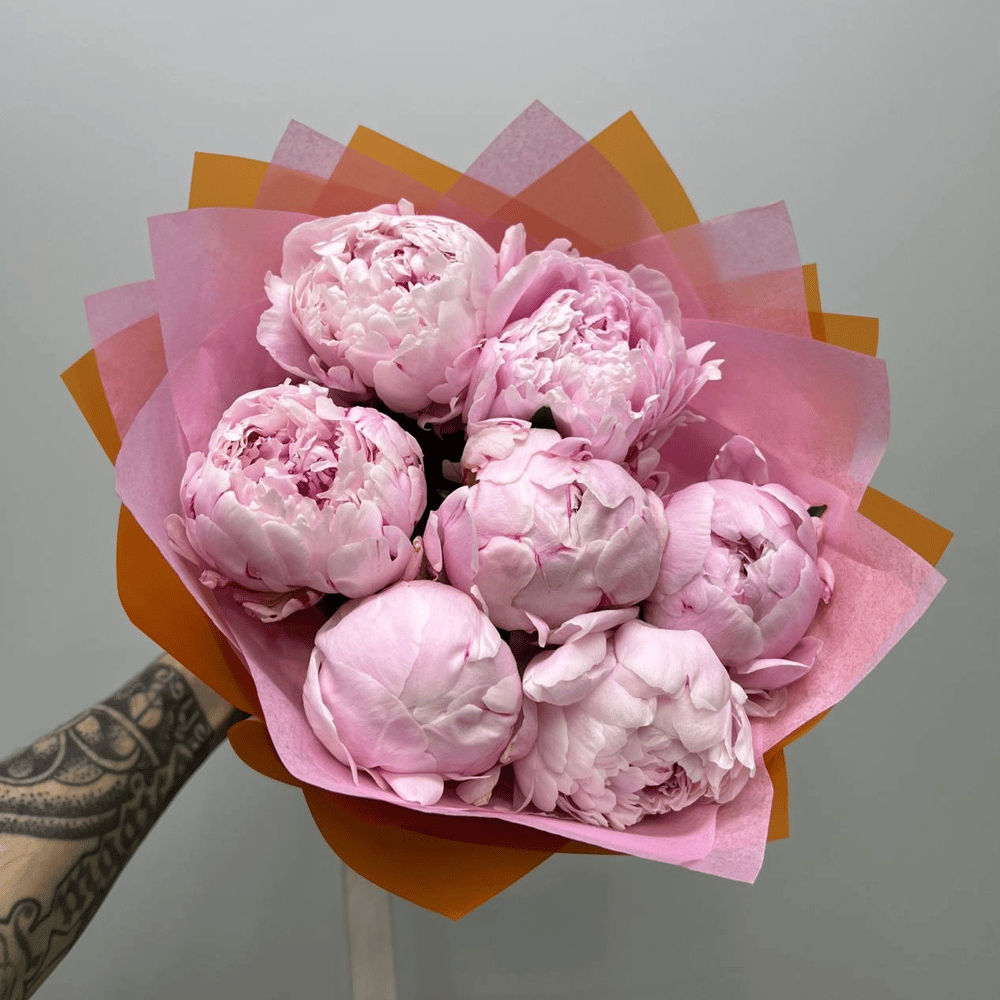 Букет «Ароматные пионы Сара оранжевые 7 шт»