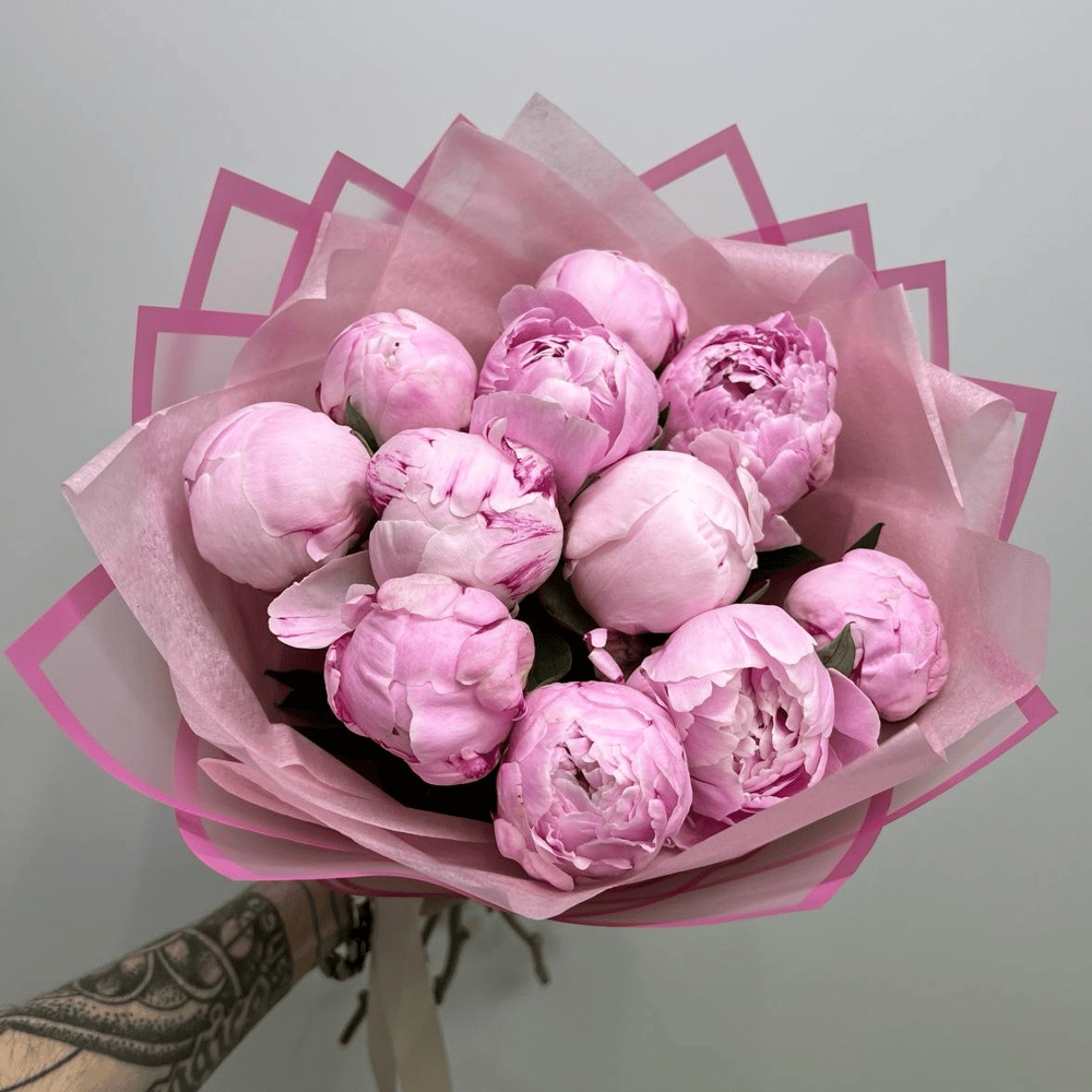 Букет «Ароматные пионы Сара розовые в тишью 11 шт»