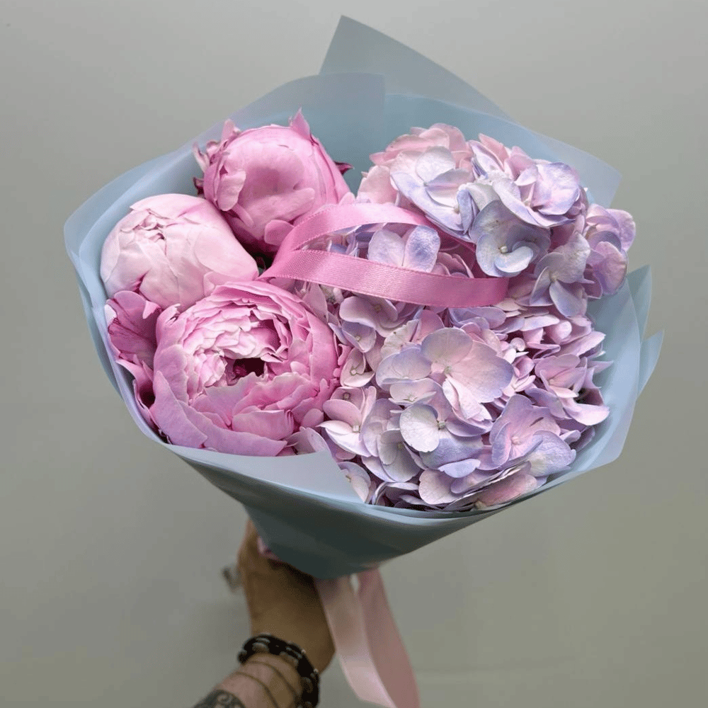 Букет «Ароматные пионы Сара с гортензией микс»