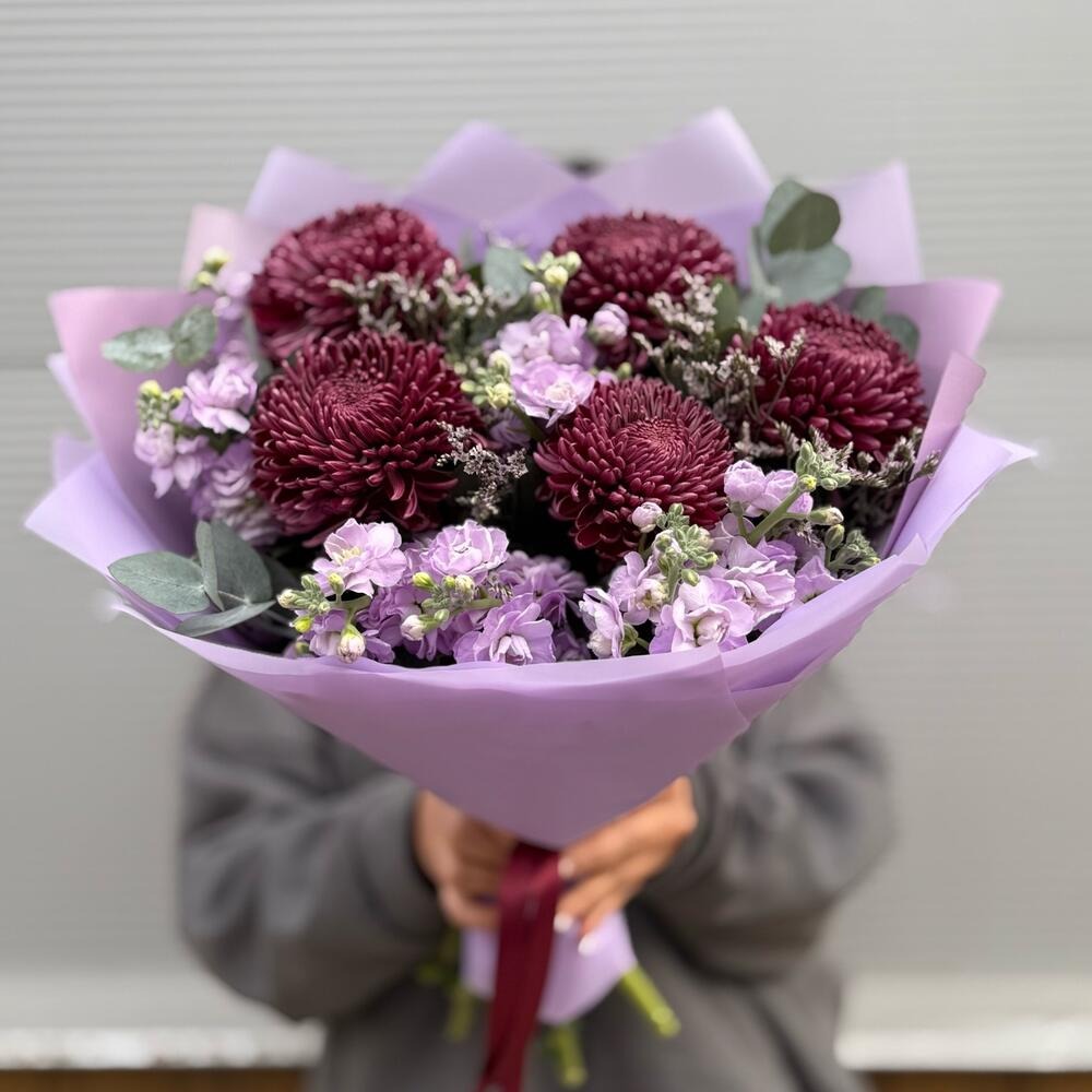 Ароматный букет с хризантемой бигуди из экзотических цветов