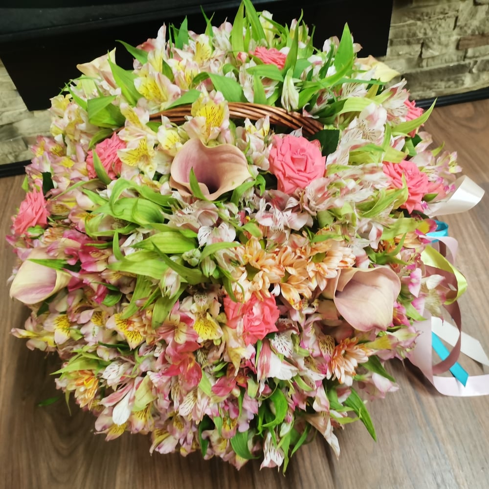 Корзина с цветами «Авторская богема XL» из альстромерий и калл