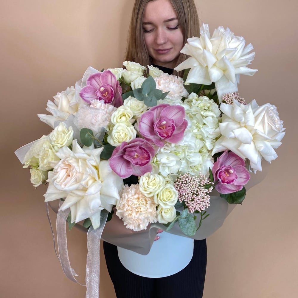 Букет «Авторская композиция с французскими роза» из орхидей и гортензий
