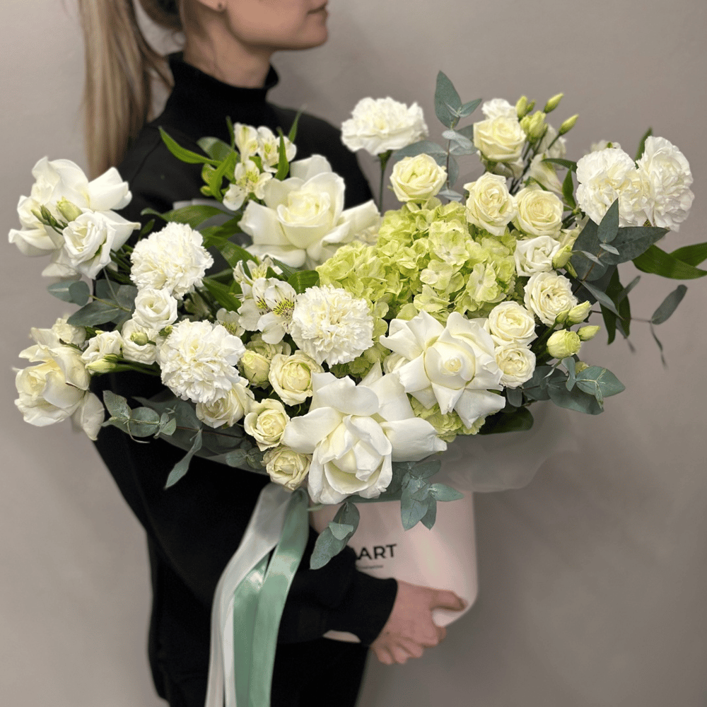 Эта изысканная шляпная коробка с гортензией, альстромерией, кустовой розой, эустомой, диантусами и розой в белых оттенках создаст атмосферу праздника и легкости. Гортензия добавит композиции нотки изысканности и роскоши своими объемными соцветиями. Альстромерия привнесет в коробку нотки нежности и красоты благодаря своим ярким цветкам и изящным листьям. Кустовая роза придаст композиции изысканности и элегантности своими нежными белыми цветками. Эустома добавит коробке нотки свежести и аромата благодаря своим ярким цветам и приятному аромату. Диантусы привнесут в композицию яркие оттенки и нежность своими мелкими цветками и приятным ароматом. Роза в белых оттенках завершит композицию, придавая ей изысканность и шарм благодаря своей красоте и аромату. Для того, чтобы ваш букет цветов радовал глаз дольше, нужно следовать нескольким простым правилам: 1. Обрежьте стебли на 1 см под углом 45 градусов, чтобы увеличить площадь поглощения воды. 2. Поместите цветы в вазу с холодной водой и добавьте средство для продления жизни срезанных цветов. 3. Ежедневно меняйте воду и обновляйте срез цветов каждые 1-2 дня. FMART x Alpiysky ⛰