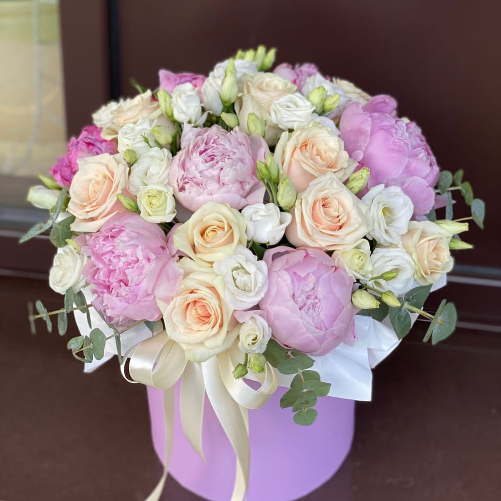 Шляпная коробка с цветами «Авторская коробка с ароматными пионами»