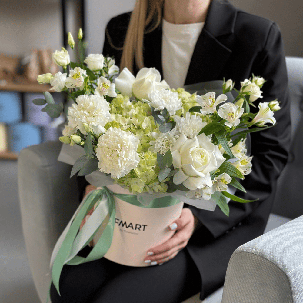 Эта авторская композиция включает в себя нежные гортензии, символизирующие благородство и изысканность, а также яркие альстромерии, выражающие радость и теплоту. Дополняют букет изысканные белые розы, символизирующие чистоту и нежность, а также ароматный диантус, олицетворяющий любовь и привязанность. Сияющий эустома добавляет волшебства и таинственности, а свежий эвкалипт придает композиции нотки свежести и чистоты. Эта шляпная коробка с цветами - идеальный подарок для тех, кто ценит изысканность и нежность в каждой детали. Для того, чтобы ваш букет цветов радовал глаз дольше, нужно следовать нескольким простым правилам: 1. Обрежьте стебли на 1 см под углом 45 градусов, чтобы увеличить площадь поглощения воды. 2. Поместите цветы в вазу с холодной водой и добавьте средство для продления жизни срезанных цветов. 3. Ежедневно меняйте воду и обновляйте срез цветов каждые 1-2 дня. Не забудьте поделиться этими советами со своими друзьями, чтобы их цветы тоже были красивыми и свежими! И не забывайте добавлять наш магазин в избранное, чтобы всегда легко находить нужный товар. FMART x Alpiysky ⛰