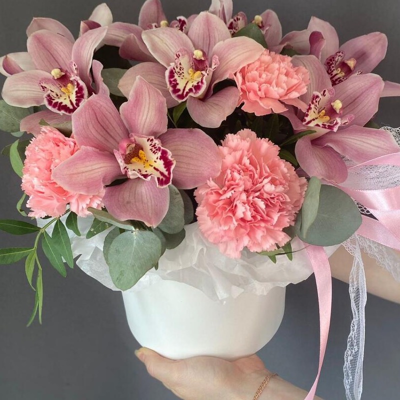 Шляпная коробка с цветами «Авторский бокс с орхидеями»