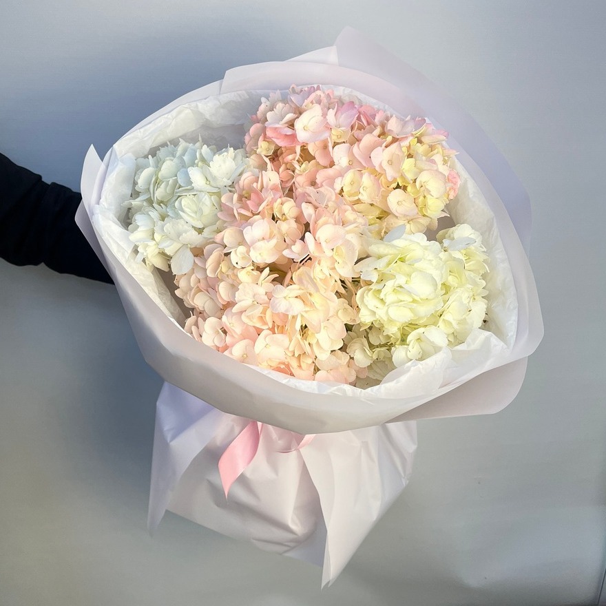Состав букета: Авторская упаковка букета - 1 шт; Тишью - 2 шт; Гортензия - 4 шт;