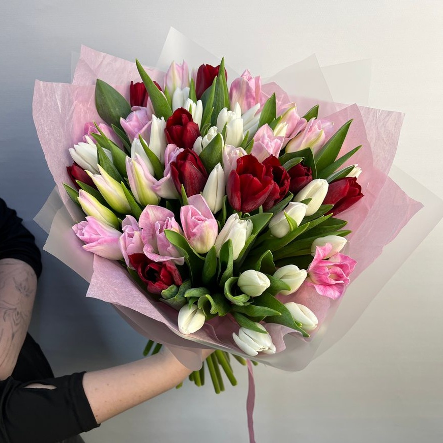 Состав букета: авторская упаковка - 1 шт тюльпан -51 шт