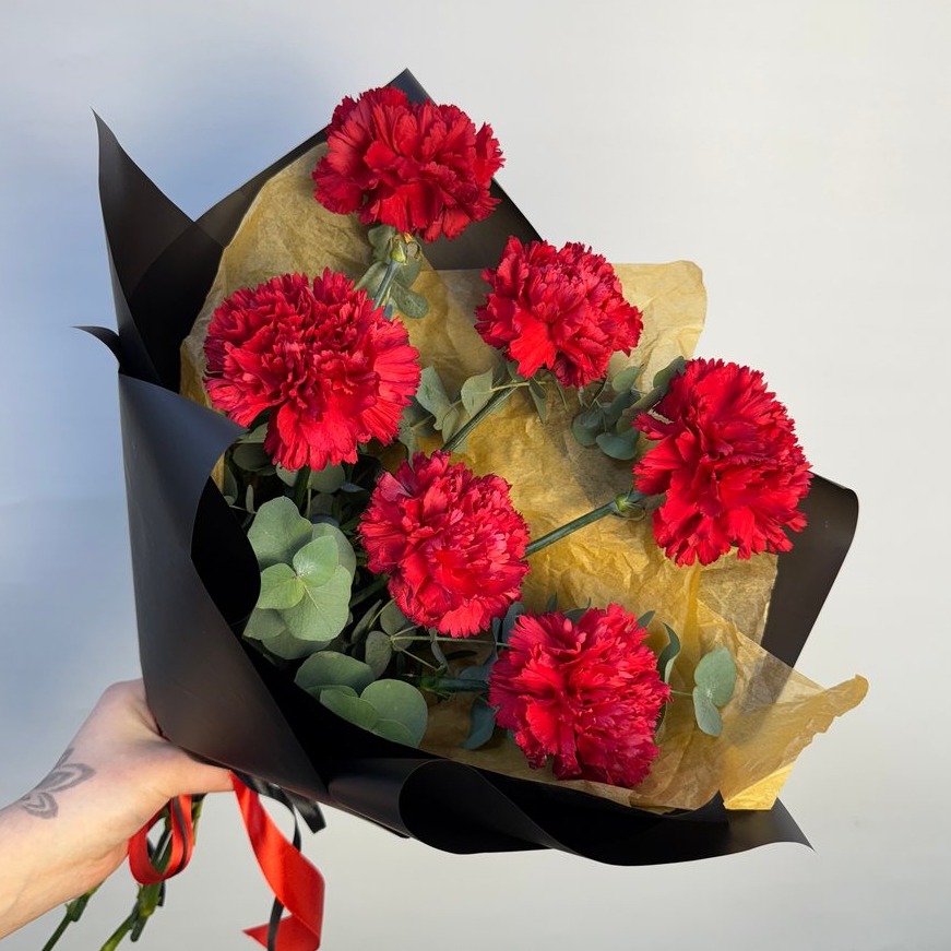 Состав букета: Авторская упаковка букета - 1 шт;; Диантус - 6 шт; Эвкалипт - 2 шт; Писташ - 3 шт;