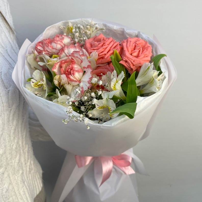 Авторский букет 171- сборный из альстромерий и гвоздик
