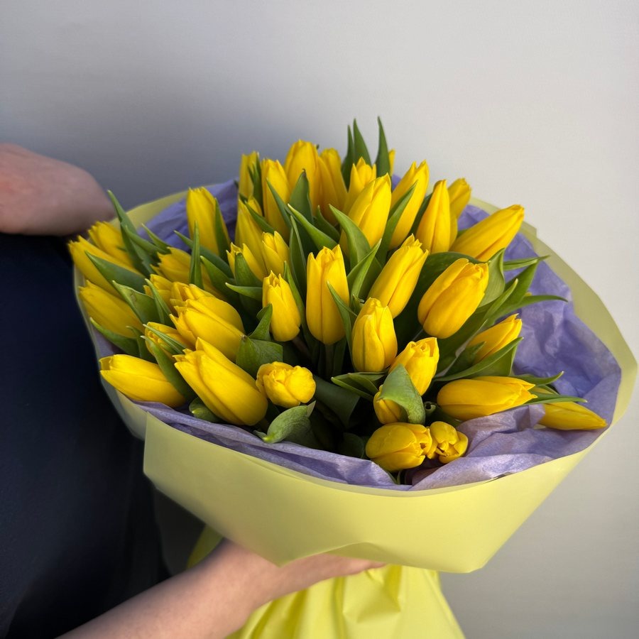 Состав букета: Авторская упаковка букета - 1 шт; Тишью - 2 шт; Тюльпан - 45 шт;