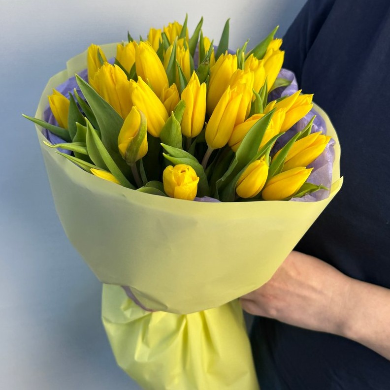 Состав букета: Авторская упаковка букета - 1 шт; Тишью - 2 шт; Тюльпан - 35 шт;