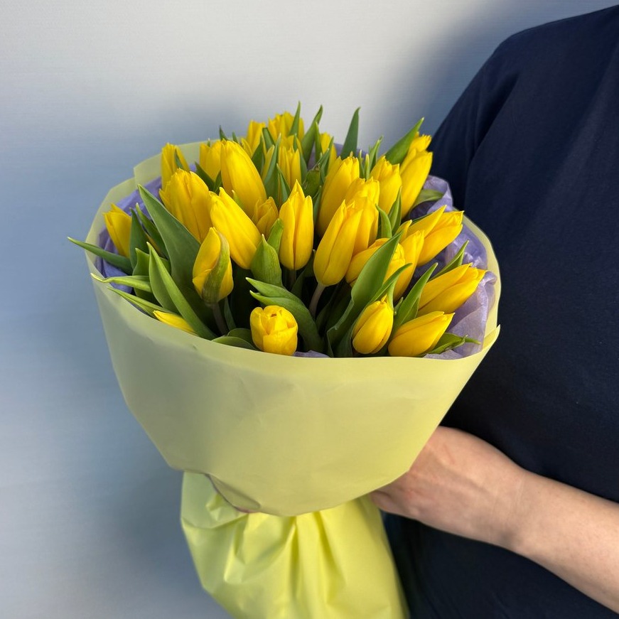Состав букета: Авторская упаковка букета - 1 шт; Тишью - 2 шт; Тюльпан - 25 шт;