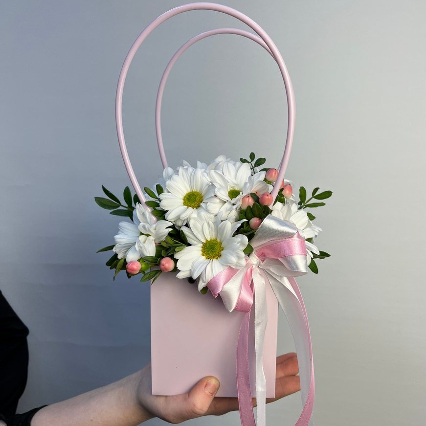 Коробка с цветами «Авторский букет 175- Комплимент» из хризантем
