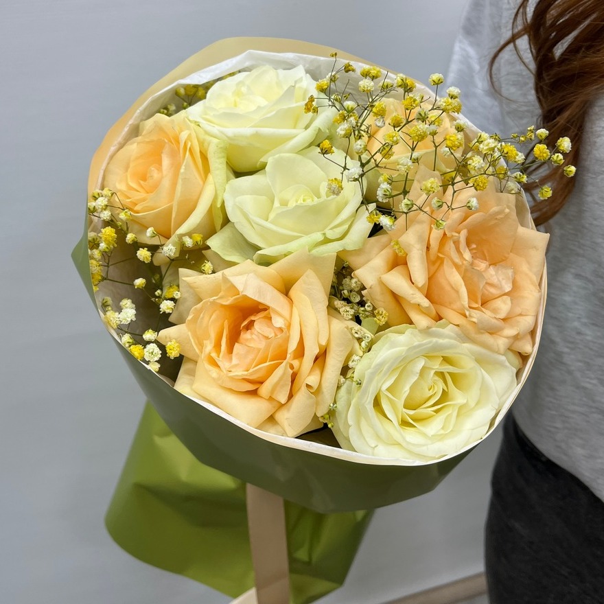 Авторский букет 88 - Для девушки из роз и гипсофил