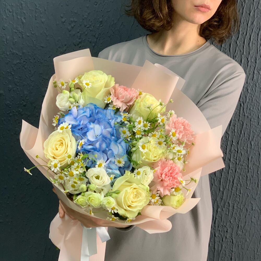 Авторский букет "Больше чем любовь" из гвоздик и гортензий