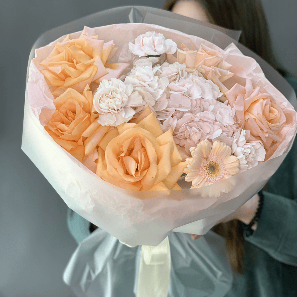 Идеальный великолепный букет, состоящий из роз, диантусов, гермини и гортензии. Этот букет перенесет вас в мир красоты и гармонии. Роскошные розы символизируют любовь и страсть, диантусы добавляют ...