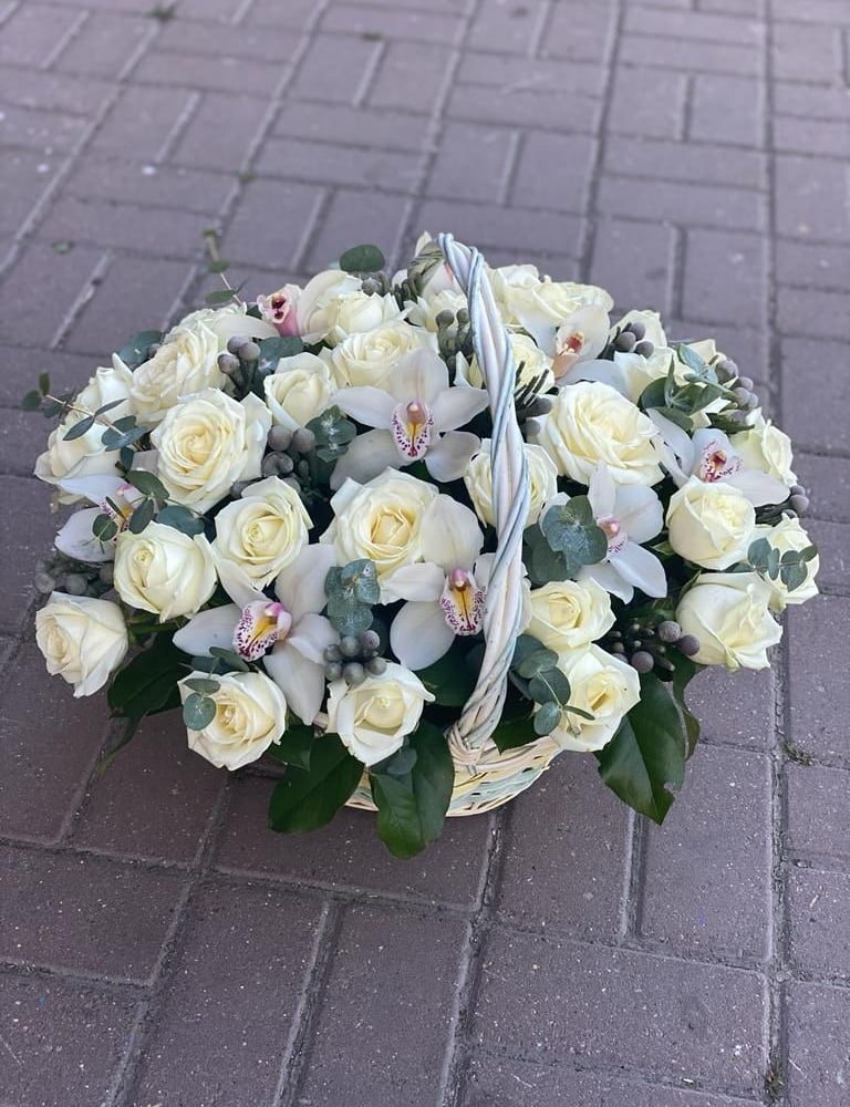 Корзина с цветами «Авторский букет из роз и орхидеи»