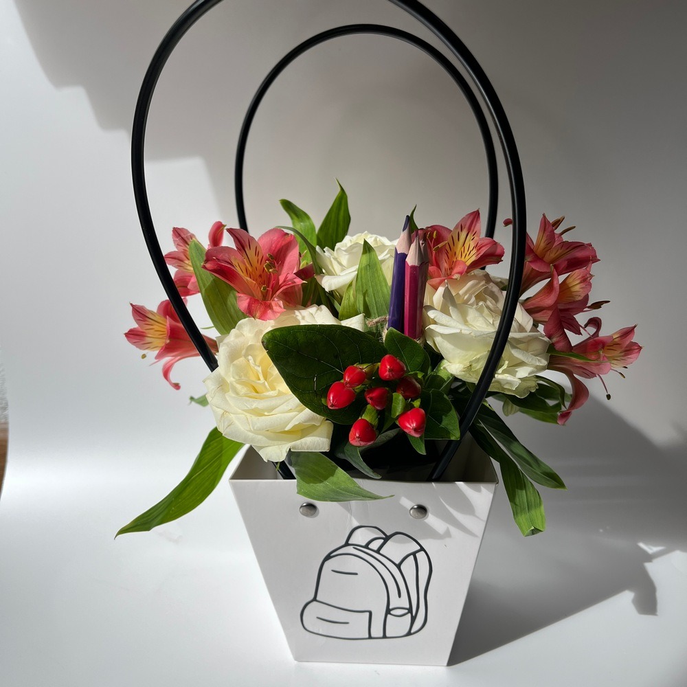 Композиция «Авторский букет н25 - 1 сентября» из роз и альстромерий