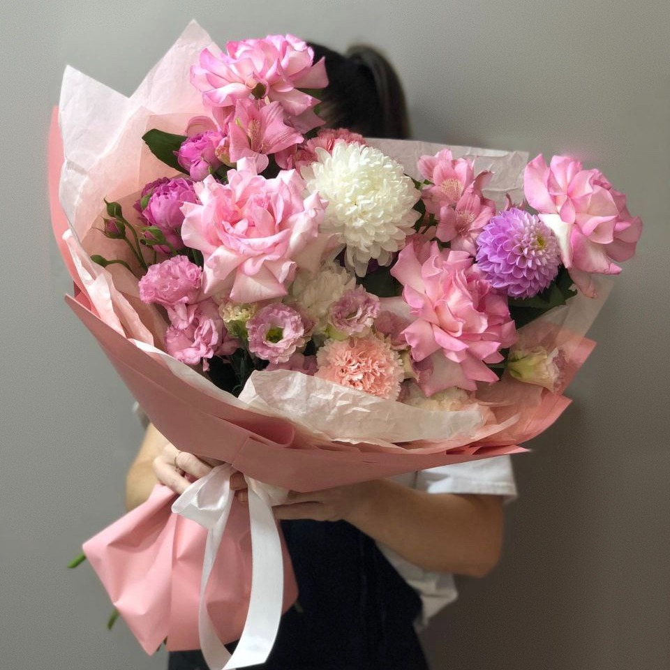 Авторский Букет в нежно-розовых оттенках в дизайнерской упаковке.