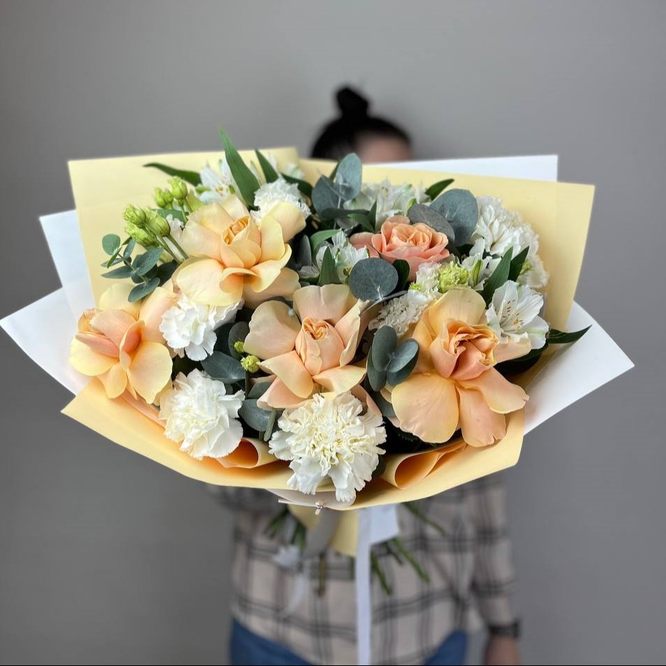 Волшебный букет интригует своей красотой. Флористы собрали его из самых свежих цветов, тщательно продумав состав. Теперь он готов удивить красотой своего получателя. Букет упакован в декоратив...