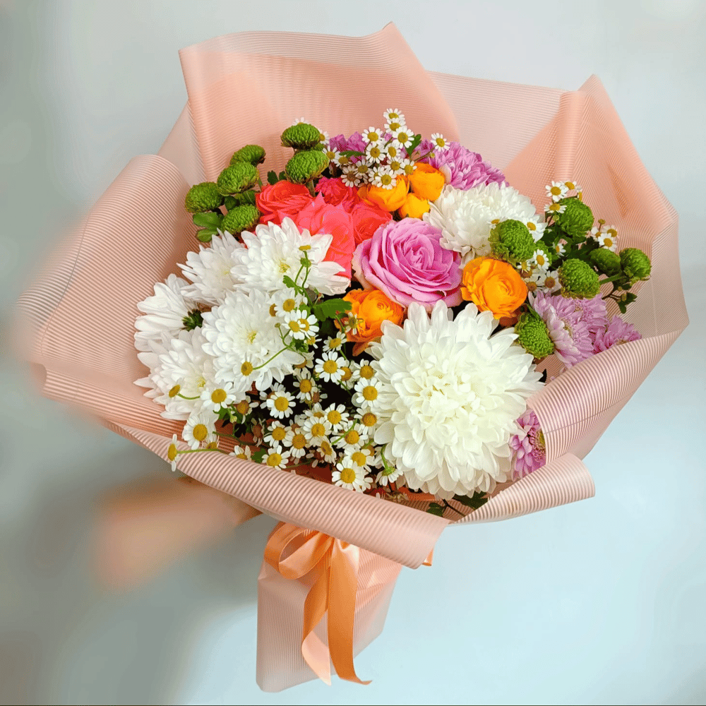 Авторский букет Сияние из хризантем и роз