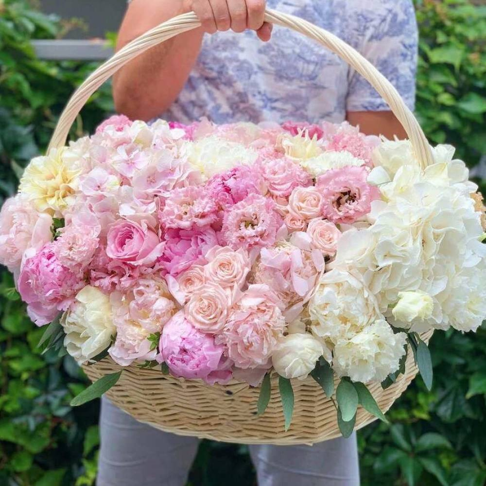 Авторский букет в корзине от Pink Flowers Premium – это уникальное сочетание красоты и качества. В составе букета вы найдете 67 различных цветов, включая розы, кустовые розы, гвоздики и эустомы. ...