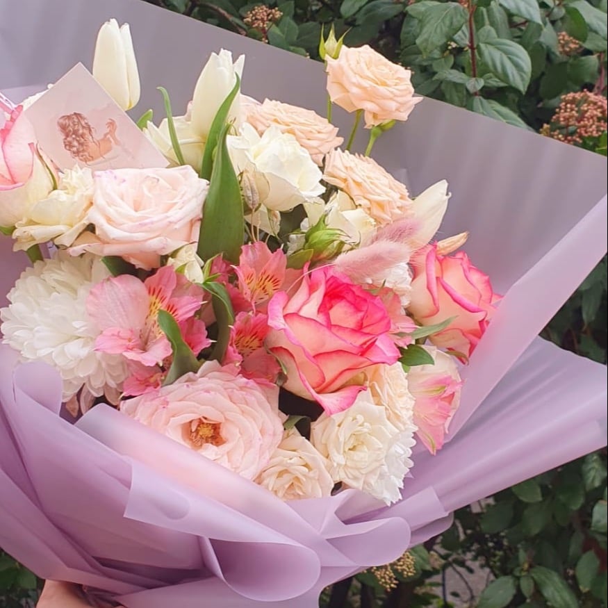 Авторский букет Весенний бриз из роз и альстромерий